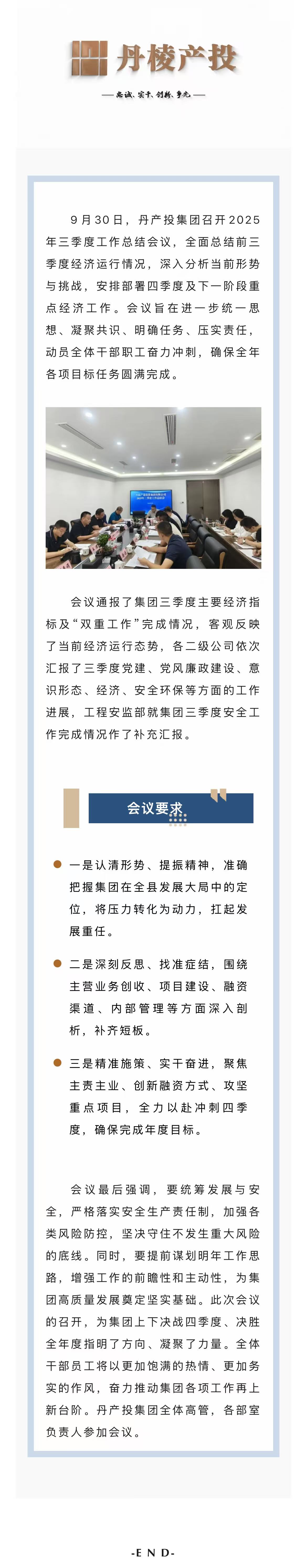 錨定目標 精準施策 全力沖刺全年任務(wù)丨丹產(chǎn)投集團召開(kāi)2025年三季度工作總結會(huì )議